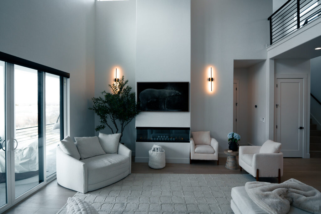Some homeowners personalize their space with a custom fireplace in the living room or a warm accent wall that complements the modern architecture. Others bring in character through wood beams, vaulted ceilings, or built-in shelving that highlights art, books, or travel pieces.